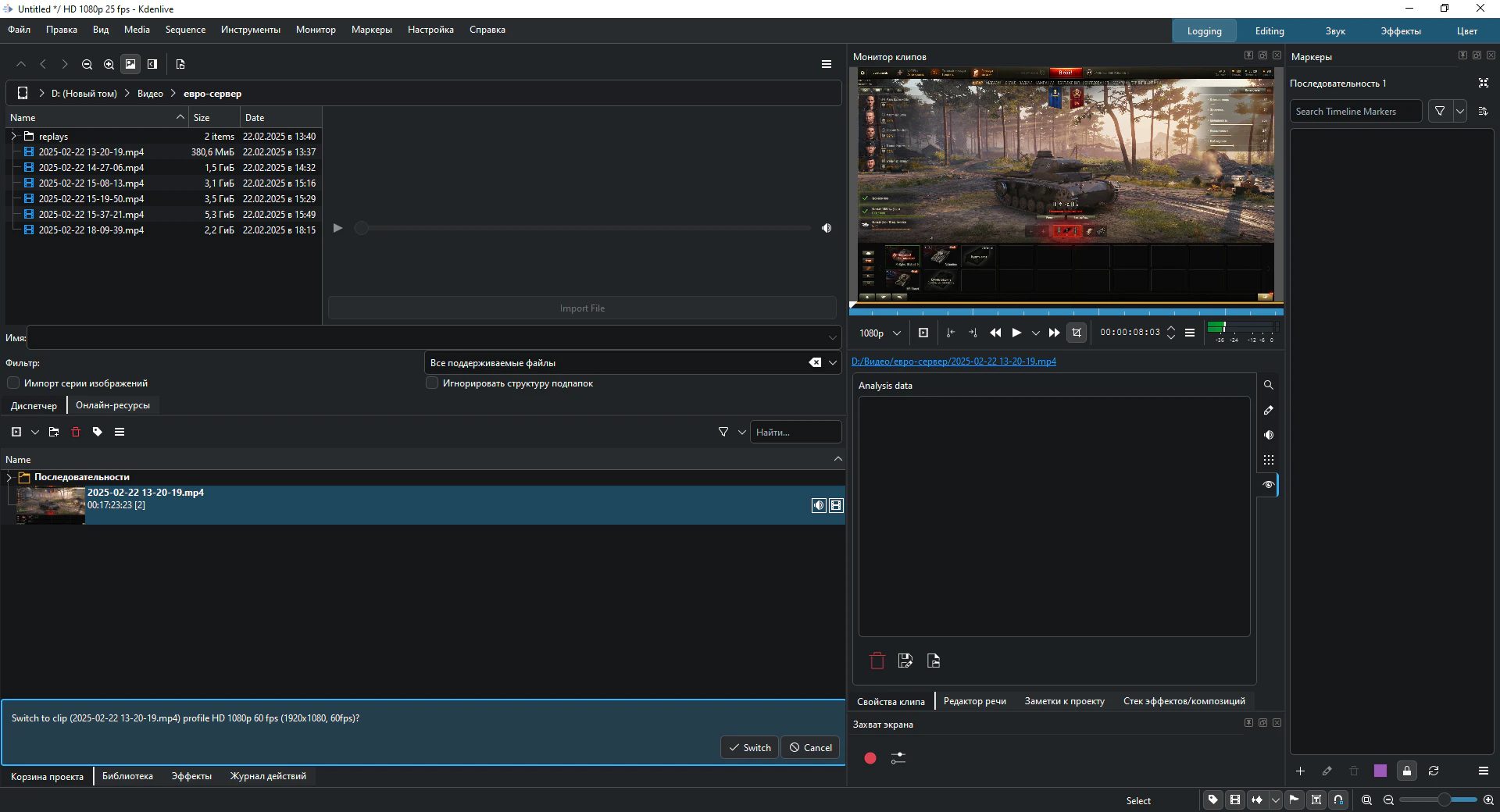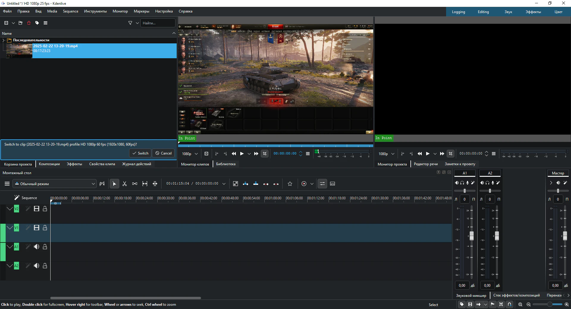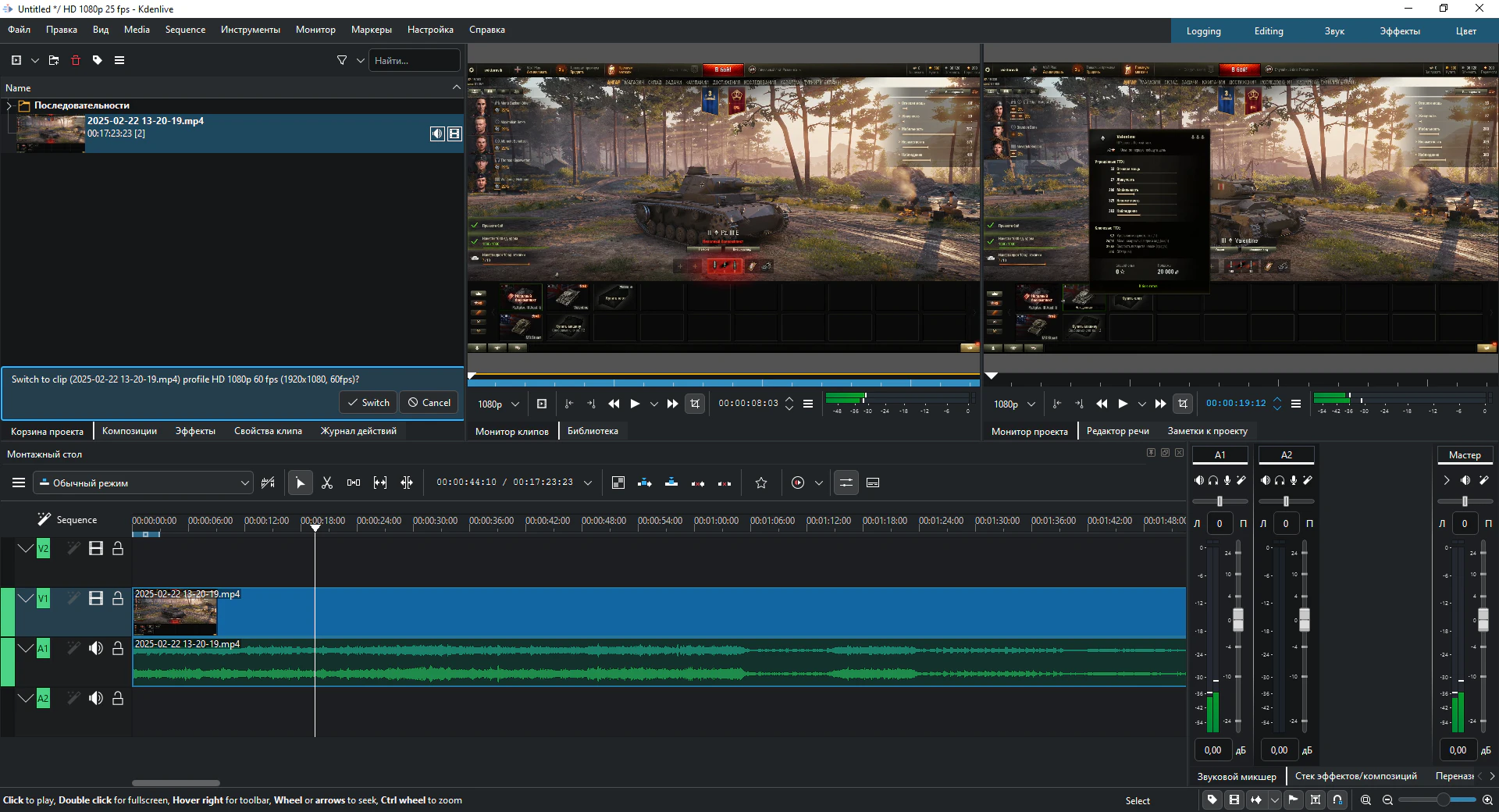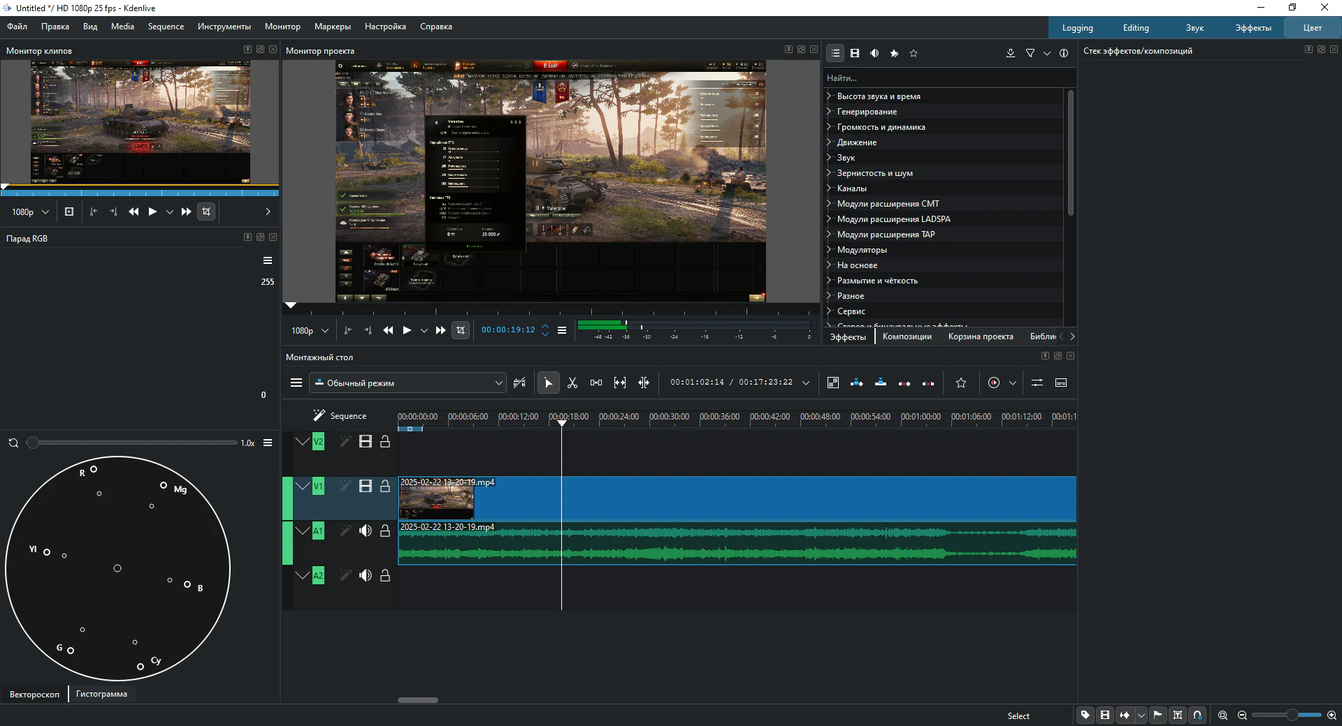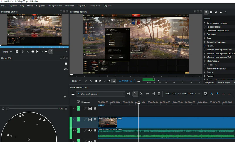 Неограниченное количество видео- и аудиодорожек, которые можно скрывать и отключать по отдельности, регулировать по высоте, сворачивать по отдельности или по всей дорожке. Вы можете присваивать им имена для удобного различения в сложных проектах. Благодаря мощным библиотекам FFmpeg, Kdenlive может напрямую использовать практически любые аудио- и видеоформаты без необходимости конвертации или перекодирования клипов. Если ffmpeg может это сделать, то и Kdenlive сможет. Kdenlive поддерживает стандартную для отрасли технику редактирования «3-точечное редактирование». Воспроизведите клип в окне просмотра клипа, определите точки начала и конца для клипа, а также точку начала на указанной дорожке. Настройка режима редактирования определяет, следует ли вставлять или перезаписывать уже имеющееся на временной шкале. Вы можете выбрать отображаемые виджеты, их размер, положение и группировку в соответствии с вашим индивидуальным рабочим процессом редактирования. Kdenlive позволяет сохранять различные раскладки для оптимального использования экранного пространства в зависимости от этапов редактирования. Включает в себя настройки по умолчанию для ведения журнала, редактирования, цветокоррекции и редактирования звука. Клавиатуру можно настроить под ваши индивидуальные предпочтения, что облегчает переход с других программ для видеомонтажа. Также доступны ограниченные возможности настройки тем оформления. Kdenlive имеет встроенный 2D-редактор заголовков для создания любого типа текста, от простых выносок до бегущей строки с титрами. Он использует все шрифты и гарнитуры, установленные в вашей операционной системе, позволяет устанавливать межстрочный и межсимвольный интервалы, а также включает стандартные функции форматирования текста, раскрашивания, пространственного распределения и выравнивания. Имеет ограниченную функциональность анимации для прокрутки в любом направлении и эффект пишущей машинки для посимвольного, пословного или построчного отображения текста. Kdenlive интегрируется с Glaxnimate для работы с векторной графикой (SVG) и создания различных анимаций, таких как отображение маршрута на карте, инфографика или выноски. Доступны десятки эффектов, от художественных и стильных до размытия и повышения резкости, цветокоррекции и настройки звука, а также все стандартные функции преобразования. Эффекты предоставляются платформами MLT Framework, avfilter, frei0r и ladspa. Вы можете одновременно воспроизводить в мониторе проекта столько ракурсов камер или других типов видеоматериалов, сколько вам нужно для вашего проекта, а затем выбрать, какой источник будет добавлен на временную шкалу. Это позволяет быстро переключать ракурсы или видеоматериалы, значительно ускоряя процесс монтажа. Kdenlive обладает мощными инструментами анализа для мониторинга уровня звука и проверки цветокоррекции, чтобы ваше видео произвело впечатление на аудиторию. Измеритель звука Гистограмма Осциллограмма Вектороскоп Парад RGB Редактирование с промежуточными клипами Kdenlive может автоматически создавать копии исходных клипов с низким разрешением для плавной работы редактирования даже на системах низкой мощности. Финальный рендеринг затем использует полное разрешение. Файл проекта автоматически резервируется каждые несколько минут, а также сохраняются более старые версии файла