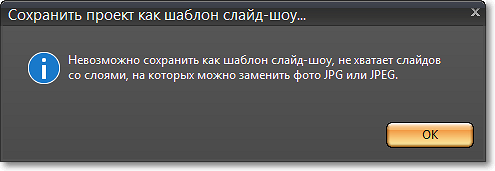 Если программа не обнаружит файлов в нужном формате, она укажет на ошибку и предложит дополнить слайд-шоу снимками.