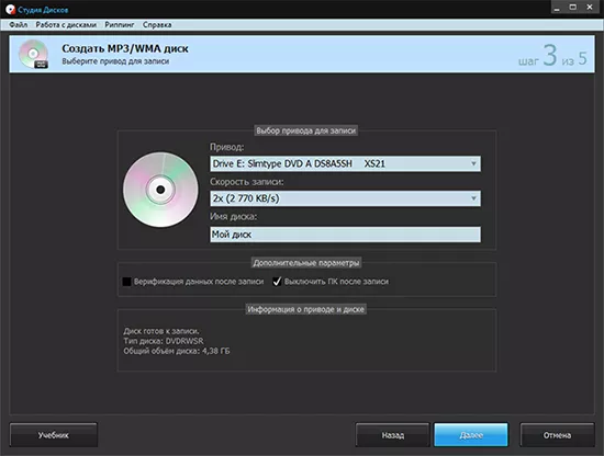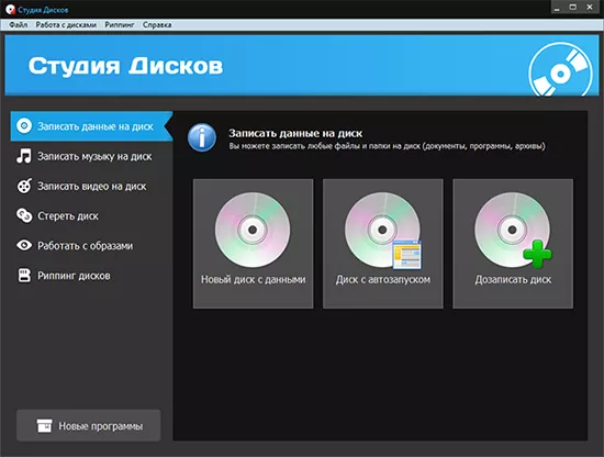 «Студия дисков» - простая и удобная программа которая позволит Вам записать компакт-диски любых форматов, поможет создать CD/DVD и Blu-Ray носители, очистить или перезаписать диски, сделать резервное копирование и риппинг (перенос информации с носителя аудио-видео информации в файл) файлов.